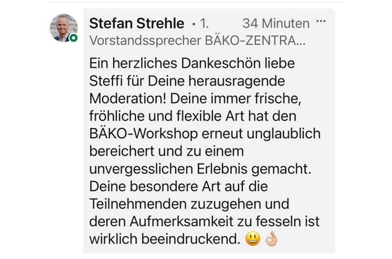 Es gibt nichts Schöneres, als begeistertes Feedback meiner Partner – danke dafür!