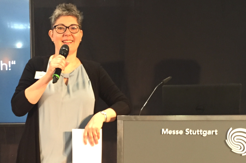 Meine Leidenschaft ist es, Menschen zu unterhalten.Am Mikrofon als Messe- und Eventmoderatorin.